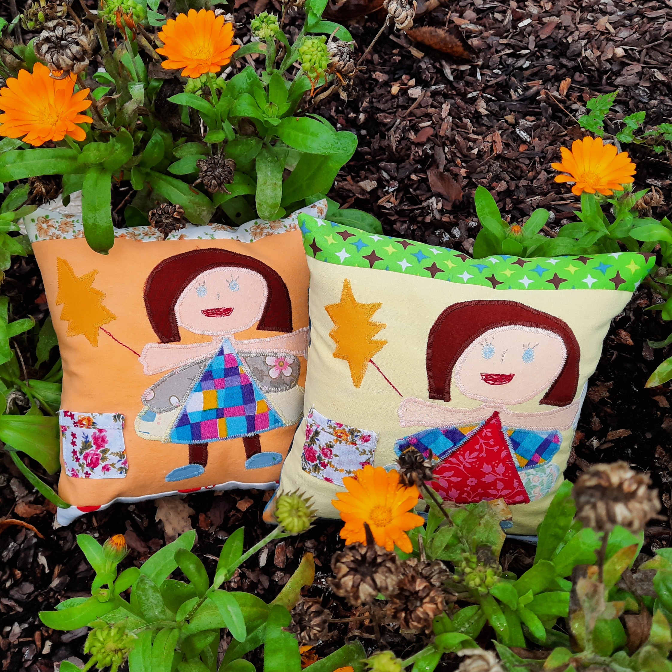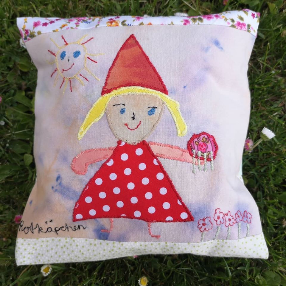 Die nachfolgenden Kissen dienen als Beispiel. Auf der Rückseite können auch Initialen, Geburtsdaten usw. genäht werden. Zum Verkauf stehende Kissen werden entsprechend gekennzeichnet.